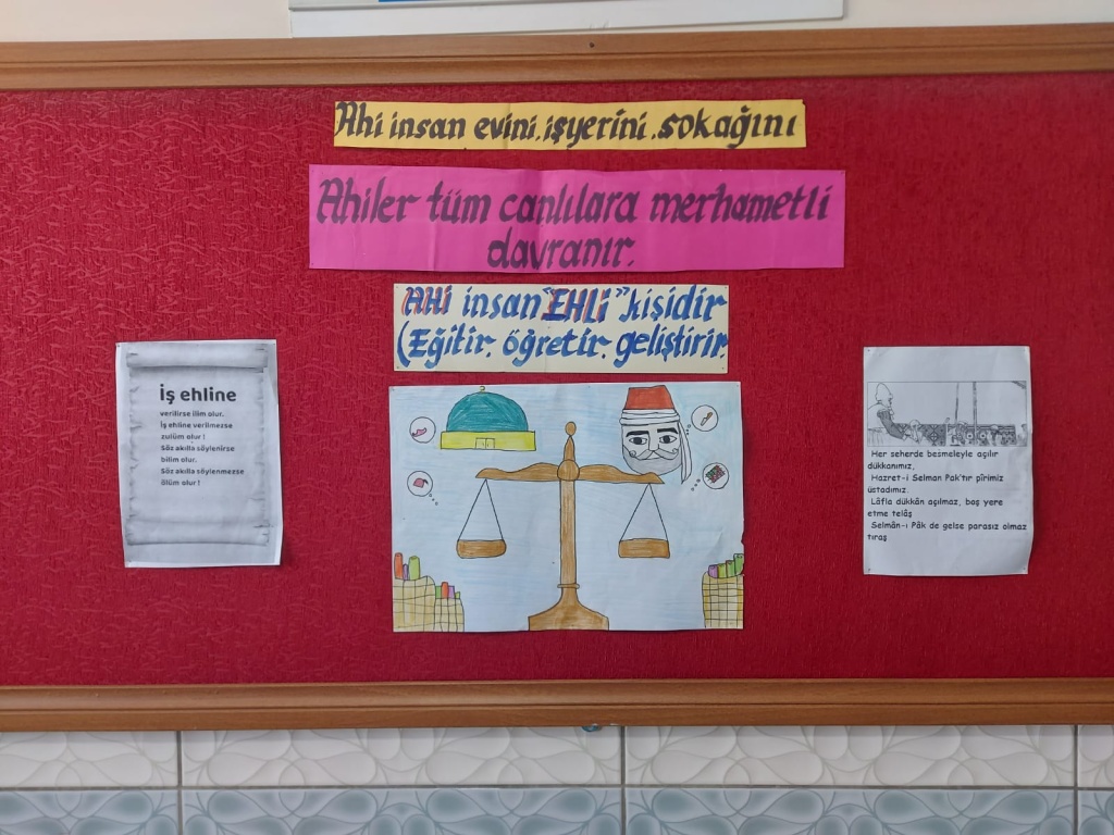 Ahilik haftası panosu oluşturuldu,programda şiirler,maniler okundu.Ahilik konulu video izletildi.